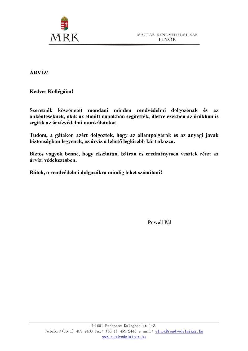 Köszönetnyilvánítás árvíz